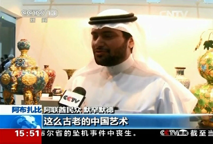 他表示:中国的艺术品和消费品都受到阿拉伯人民的喜爱,希望更多高质量高品质的产品能够进入中东市场(此段采访视频被央视新闻频道采用)。