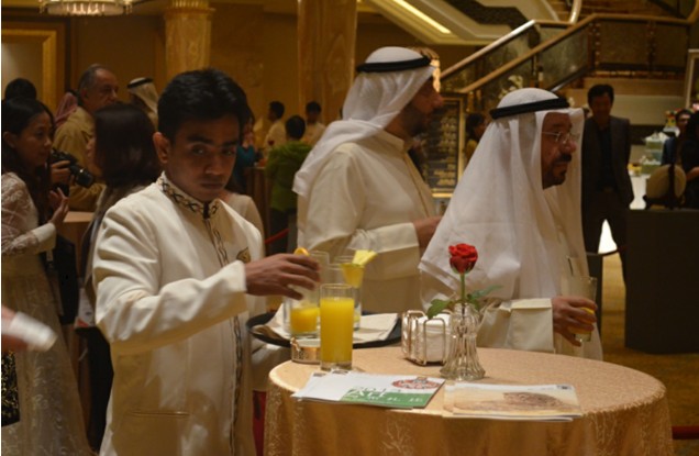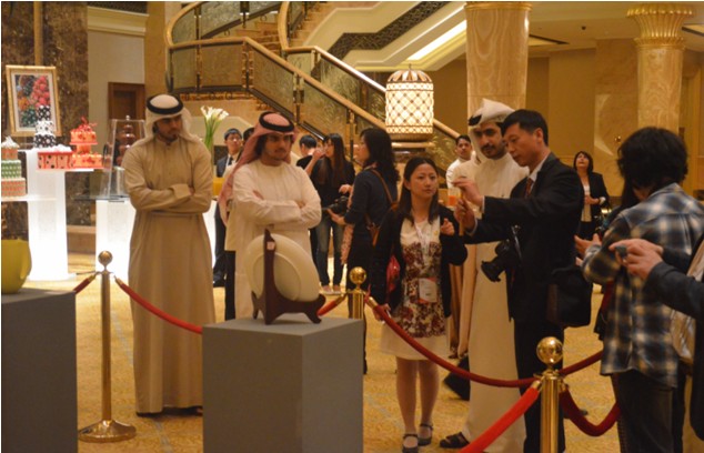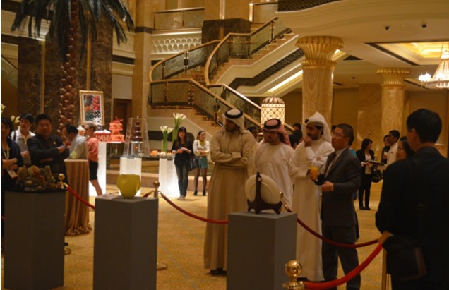 6,为了进一步壮大声势,我们在阿布扎比八星级皇冠酒店(emirates palace)举行艺术品展出和轻工展展商晚宴,实在是高端、大气、上档次啊。这里是国王专门接待外宾的国宾酒店,可不是有钱就可以订到房间奥,都是要有一些政治身份的。