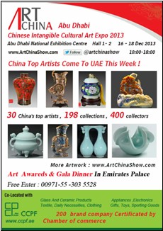 宣传方式还是一样,迪拜专业的推广公司ITP负责我们报纸杂志广告、邮件群发、专业买家快递邀请函、短信营销、电台广播等。但是我们在宣传的内容上突出了中国艺术品收藏这个主题。