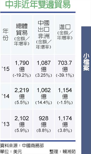 从中非整体经贸交流概况来看,中国自2009年已成为非洲第一大贸易伙伴。法新社报导指称,非洲大陆自然矿产丰富,向中国大量出口铁矿、石油、铜等原材料,支撑了中国近几10年来经济的快速增长。与此同时,中国对非洲投资从2008年的70亿美元急增至2013年的260亿美元。