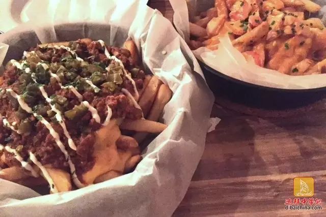 特色薯条:这家餐厅有八种不同风格的薯条,包括肉汁、调味汁、蔬菜、肉末和各种香料。其中比较有特色的是棕榈肉汁奶酪薯条(Palm Poutine),它是由螺旋薯条、特制肉汁、青椒和奶酪混合而成的。