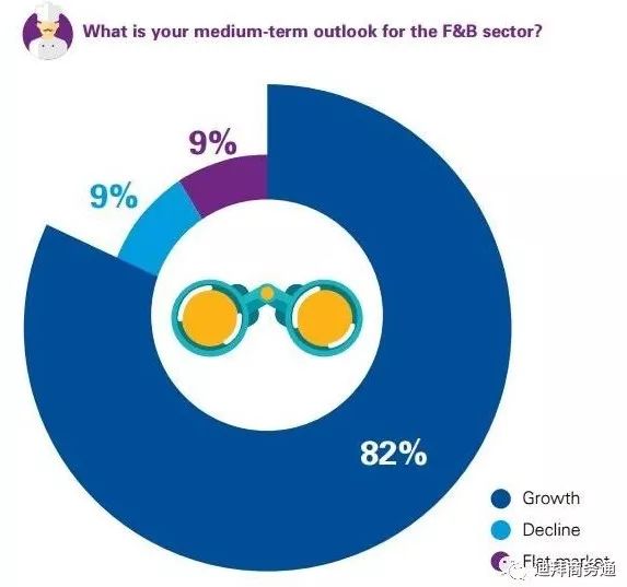 总体而言,阿联酋餐饮及食品业市场前景广阔,市场预期乐观。毕马威2017年阿联酋餐饮业报告显示,82%的受访者认为,从中期看,阿联酋餐饮及食品业将保持增长。