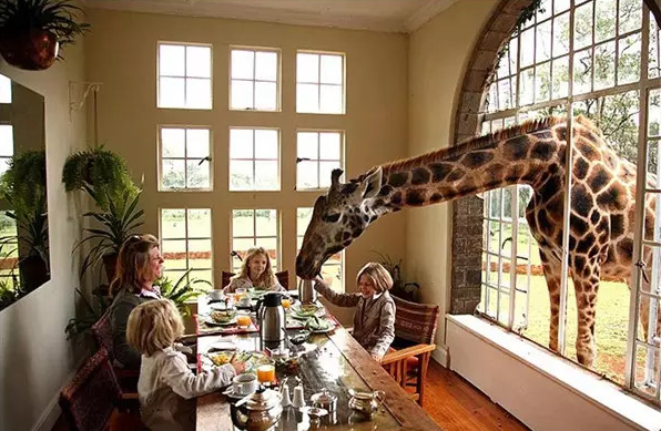 肯尼亚提供无限亲近自然的居住环境。住在帐篷酒店,大象路过你的门口,猴子嬉戏周边都不是稀奇事儿;在长颈鹿庄园让长颈鹿陪你吃个早餐更是轻而易举。如此奇妙和谐的氛围,突然想起来,我们本来就是这动物世界的一员嘛。
