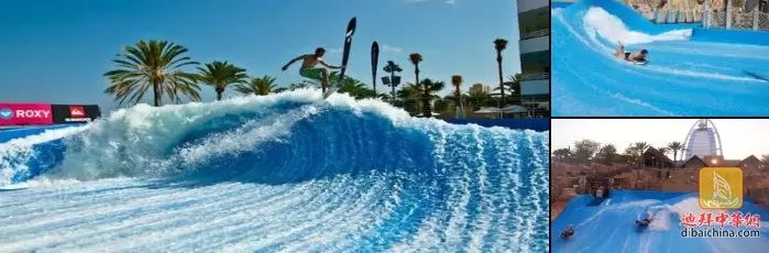 Wild Wadi Water Park是中东最新、最大的水上乐园。水上乐园的一边是棕榈岛,一边是世界岛和新的商业湾,得天独厚的位置使得它成为一个与众不同的主题公园。公园以“辛巴 达历险记”作为主题,园内有富有中东风情的城堡、花园及船只,设有瀑布、绳梯、喷射水炮等,供小朋友玩乐的设施,更有大量穿着阿拉伯传统服饰的卡通人物穿梭其间,跟旅客欢乐留影。