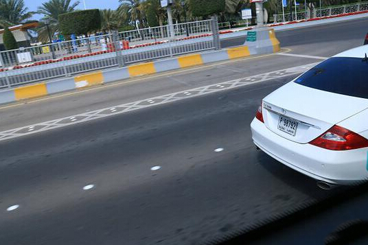 话说阿布扎比的富有还有一个不同寻常的表现,那就是主要干道上的道路分界线都是采用的白色陶瓷铆钉,在路面上非常明显,据说这样一个铆钉的价格在14美元,像阿布扎比这样的双向十车道上究竟有多少个铆钉?总价值是多少?还不包括每年两次的检修更换,可想而知这是一笔多么大的支出,迪拜可没有如此的奢侈!