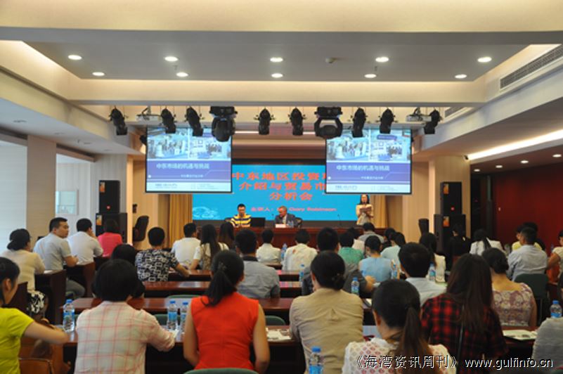 《海湾资讯周刊》报道:8月26日下午2:00,由深圳对外经济贸易服务中心主办,迪拜MIE集团承办的“中东地区投资环境介绍与贸易市场分析会暨阿布扎比轻工消费品推介会在深圳对外经济贸易服务中心举行。总共有30多家深圳和广州公司参加了此次推介会,与会企业大多来自能源,电子消费品,家具陶瓷及手工艺品等行业。深圳对外经济贸易服务中心陈科长出席了会议并发表了欢迎致辞。迪拜MIE集团展会项目部总监Gary Robinson先生和项目部经理肖锋也出席了这次推介会。