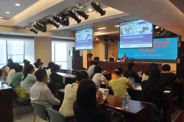 迪拜MIE集团展会项目部经理肖锋具体详细地介绍了中东国家市场情况,以及目前中国企业在阿联酋的发展现状。随后MIE集团展会项目部总监Gary Robinson先生针对中东国家经济及中国轻工消费品在中东市场的需求现状做了详细介绍。