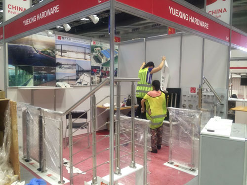 早上10点大堂集合前往高大上的展馆布展,去展馆前我们也和货运公司确认过货物都已到展位。此展馆启用于2014年,室内9个展馆,共有两层,展厅在一层。