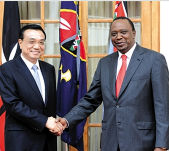 应肯尼亚总统肯雅塔邀请,国务院总理李克强5月9日对肯尼亚进行正式访问。访问期间,李克强出席了中国公司承建的“蒙巴萨至内罗毕铁路“项目的中肯共同融资签字仪式并讲话,访问了非盟总部期间,还代表中国政府对外宣布了中非区域航空合作计划。