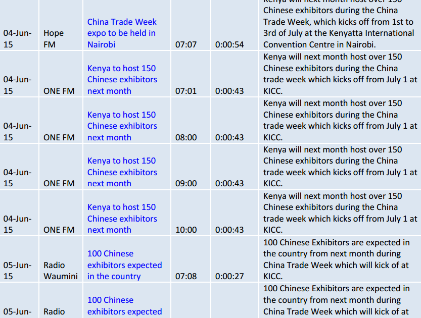 2015年6月 China TradeWeek在肯尼亚的宣传已经覆盖内罗毕整个城市并扩散到港口城市蒙巴萨地区。