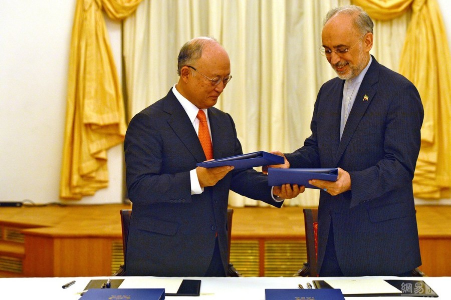 协议达成后,伊朗原子能组织负责人萨利赫和国际原子能组织领导人天野之弥签署并交换文件。