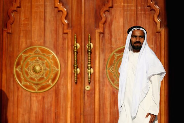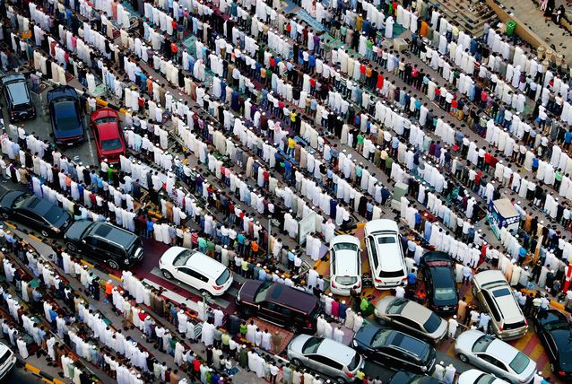 2015年7月17日,迪拜穆斯林在沙迦Al Noor清真寺的外面进行开斋节祈祷。开斋节是穆斯林的节日。开斋节意味着为期30天的斋月--从黎明到日落时的禁食结束了。