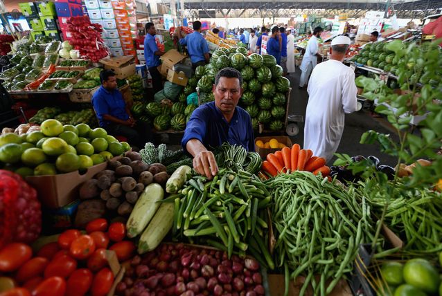 迪拜的一个商贩在开斋节前一天,卖蔬菜和水果。