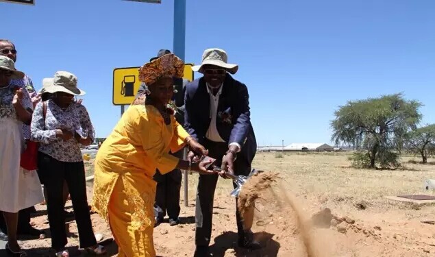 12月15日,纳米比亚工作和交通部长艾尔菲尔斯(右)与首都所在的霍玛斯地区行政长官劳拉共同为机场高速路破土。
