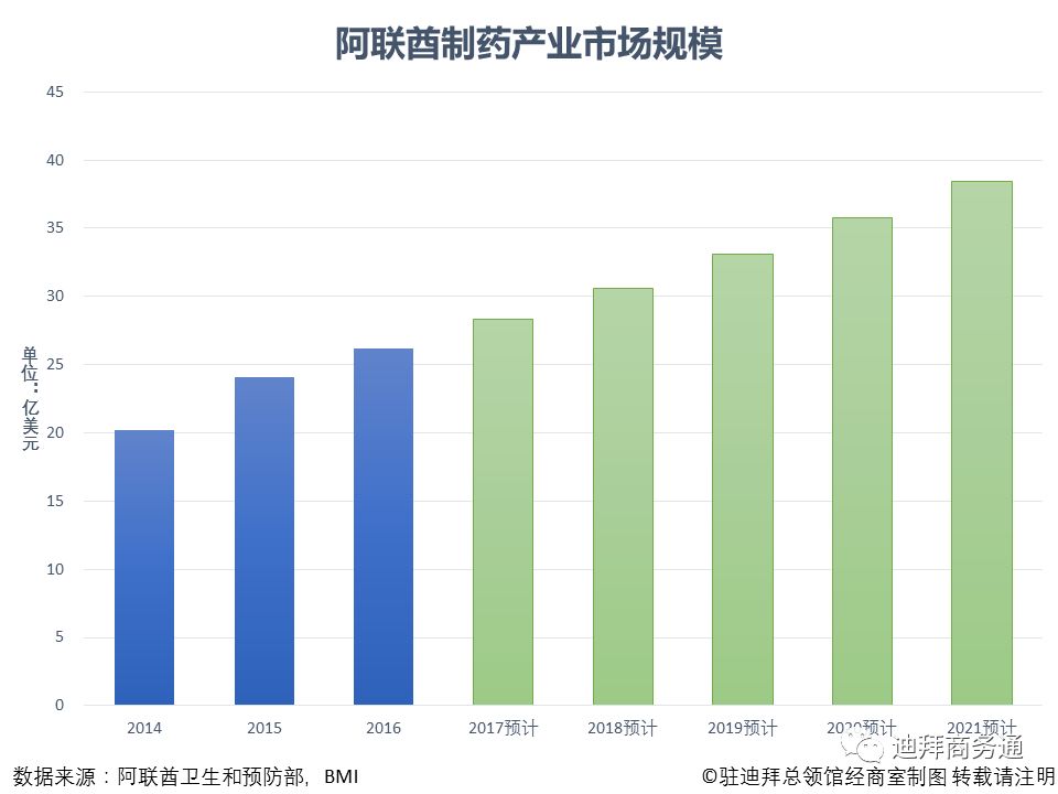与此同时,预计阿联酋药品出口也将增长。2017年,阿联酋药品出口额达36.2亿迪拉姆(约合9.9亿美元),预计到2020年,这一数字将增长至41.4亿迪拉姆(约合11.3亿美元)。