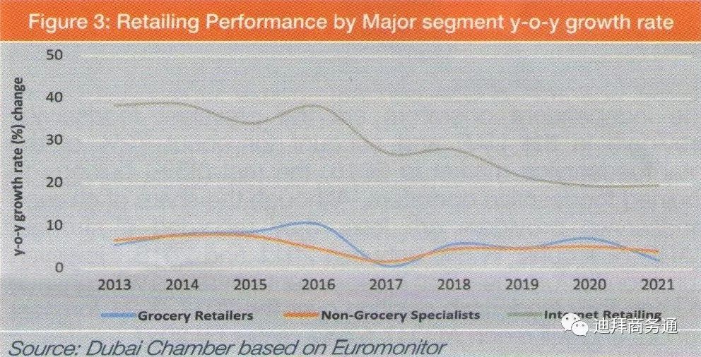 过去几年阿联酋零售业的快速扩张和大型商场的不断开发,反映了阿联酋城市化的快速发展和较高的消费支出。然而,受近期油价下跌和全球需求放缓对消费者信心和支出行为的影响,行业增长势头受阻,阿联酋零售业中的各大龙头企业纷纷推迟了新商场开发计划,转而进行线上平台投资。
