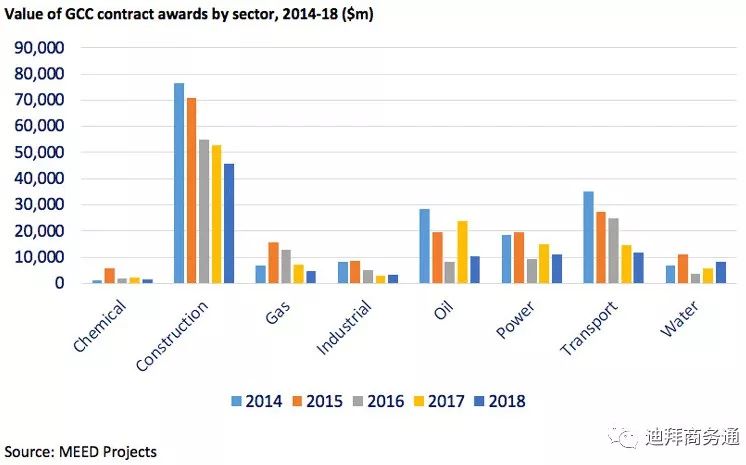 过去5年,受冲击最大的建筑市场可能也是对石油收入依赖程度最高的市场。很多沙特建筑公司在沙特市场举步维艰,于是转战迪拜市场,迪拜的经济受油价波动影响不那么直接,而且项目开支有2020世博会筹备工作作为支撑。