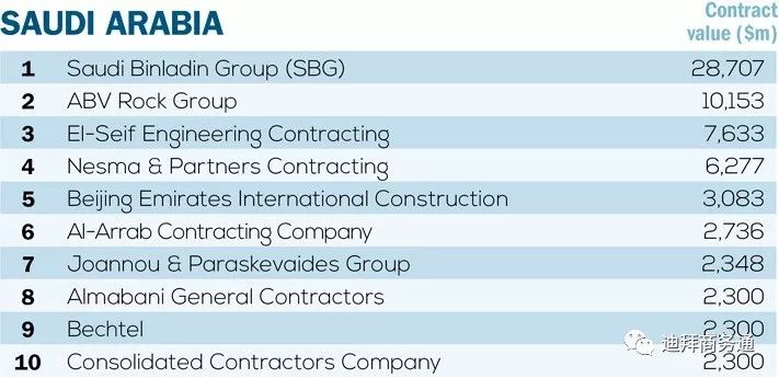 沙特建筑市场的规模和项目规模之大,意味着沙特市场上承包商的前四名,在整个海合会市场也位于前四名。
