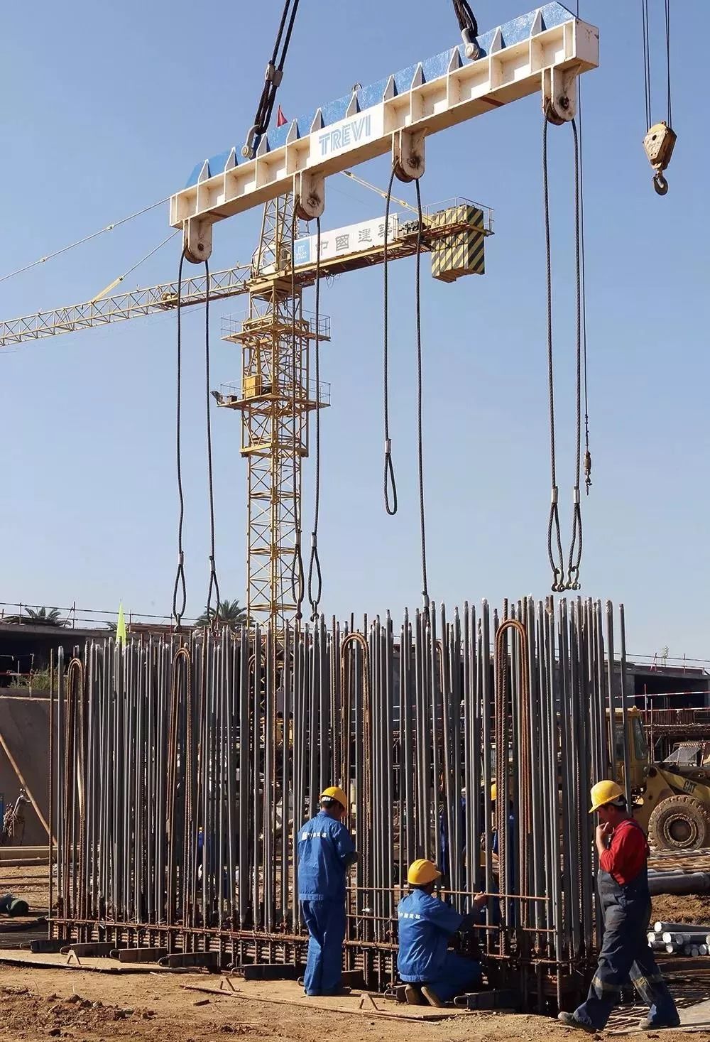 ⬆在阿尔及利亚首都阿尔及尔大清真寺的宣礼塔工程工地,工人们安装钢筋笼架 (新华社 穆罕默德·卡德里摄)