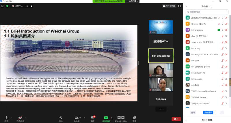 6月20日举办了汽配产品的专场配对,来自摩洛哥,医疗,加纳,肯尼亚,阿联酋的汽配采购商参加了视频配对。