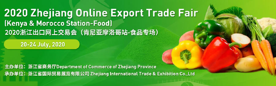 7月20日下午,由浙江省商务厅主办,浙江省国际贸易展览有限公司承办的2020浙江出口网上交易会(肯尼亚、摩洛哥站-食品专场)正式启动。此次线上展以浙江食品为主场,通过线上展览、在线配对、视频洽谈等,帮助企业抢订单、拓市场。