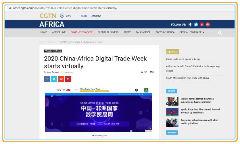 (https://myafricatoday.net/ctw-goes-digital-with-china-africa-digital-trade-week/)(CGTN https://www.africa.cgtn.com/2020/06/29/2020-china-africa-digital-trade-week-starts-virtually/